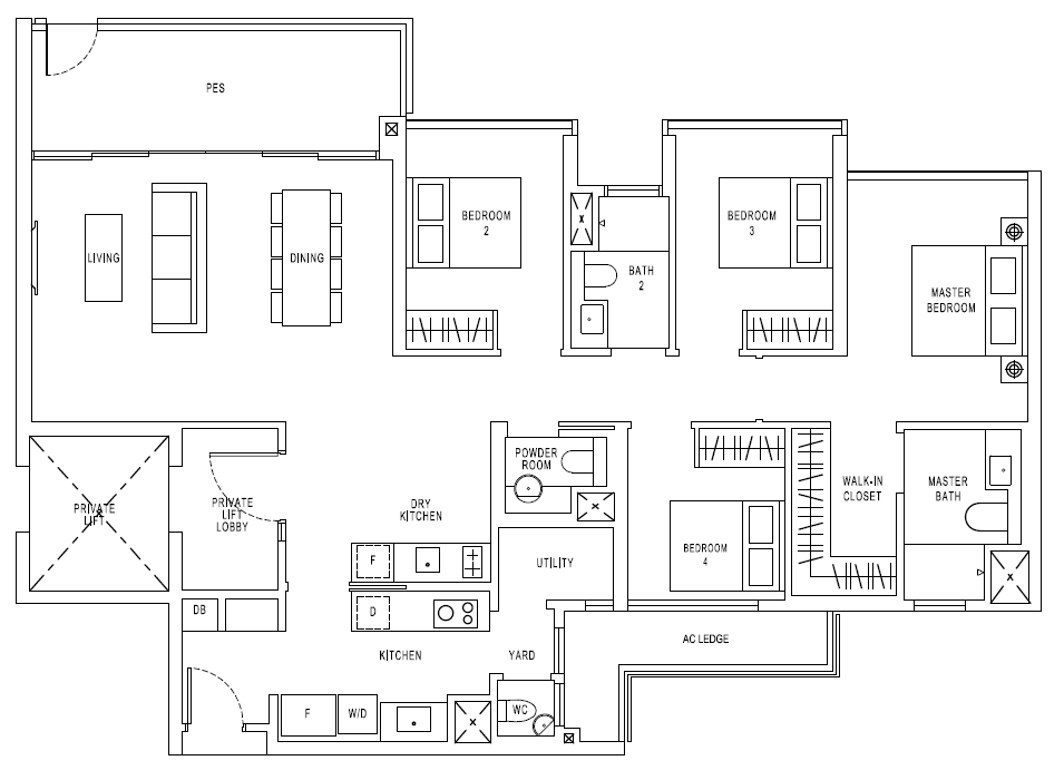 Type: D1 (4 Bedroom)   Size: 1249 Sqft / 117 Sqm
