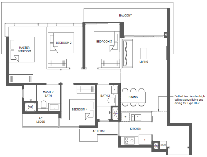 | 3 Bedroom + Flexi | 958 - 1119 | 126 |